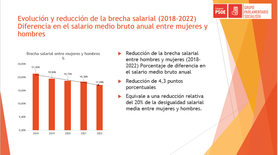 Gracias a estas políticas, la brecha salarial se ha reducido más de cuatro puntos porcentuales desde 2018 —del 21,42 % al 17,09 %—, aunque persisten diferencias por tamaño de empresa o tipo de convenio.