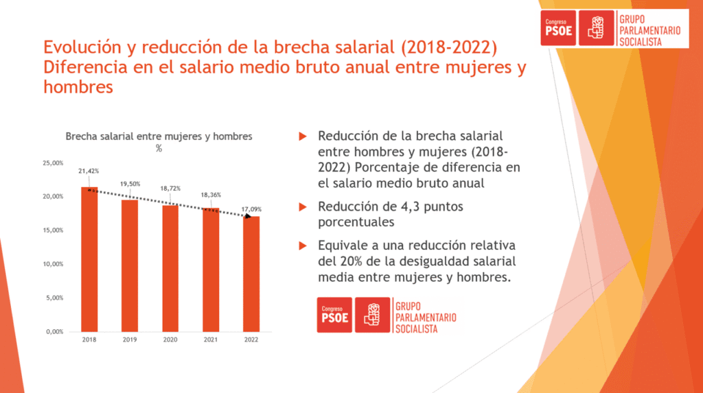 Gracias a estas políticas, la brecha salarial se ha reducido más de cuatro puntos porcentuales desde 2018 —del 21,42 % al 17,09 %—, aunque persisten diferencias por tamaño de empresa o tipo de convenio.